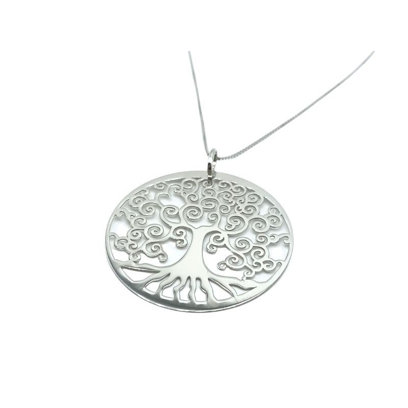 pendente albero della vita liscio in argento 925% rodiato con veneziana da 45cm. diametro 4,00cm