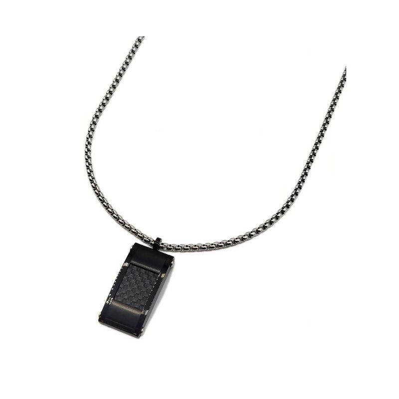 Pendente in acciaio e carbonio rettangolare e chiusura moschettone. L'articolo verrà spedito nel suo particolare astuccio X LUI.