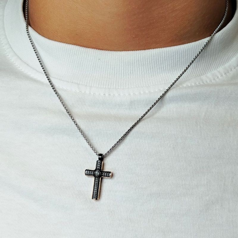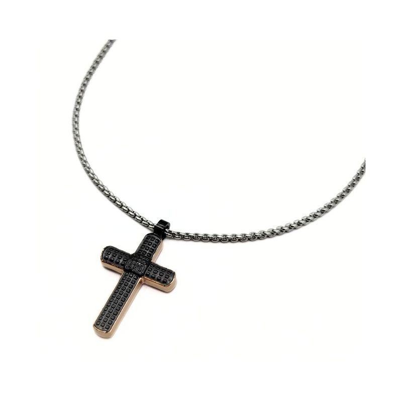 Pendente croce nera in acciaio e chiusura moschettone. L'articolo verrà spedito nel suo particolare astuccio X LUI.