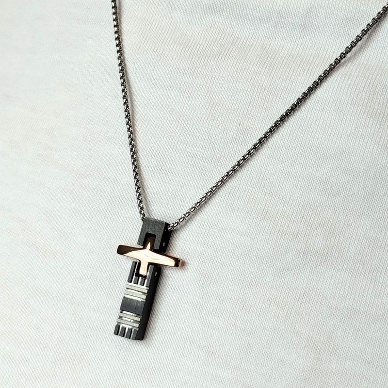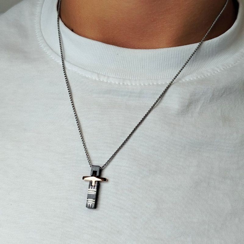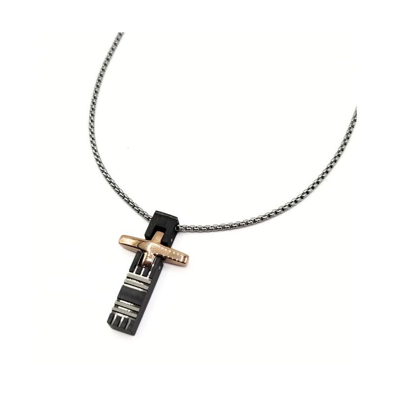 Pendente croce in acciaio rosato bicolore e chiusura moschettone. L'articolo verrà spedito nel suo particolare astuccio X LUI.