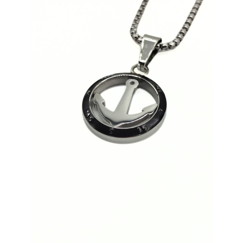 Collana in acciaio con ancora e punti cardinali. L'articolo verrà spedito in confezione originale IL GIOIELLO DI PANI.