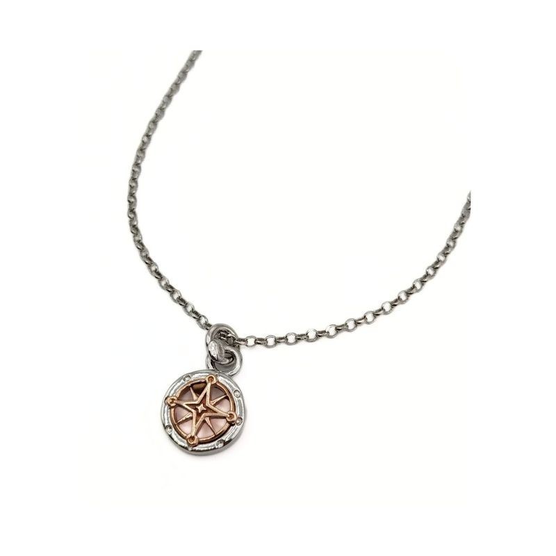 Pendente in argento bicolor, ancora o rosa dei venti e collana con chiusura moschettone. L'articolo verrà spedito nel suo particolare astuccio X LUI e certificato di qualità che ne attesta il materiale.