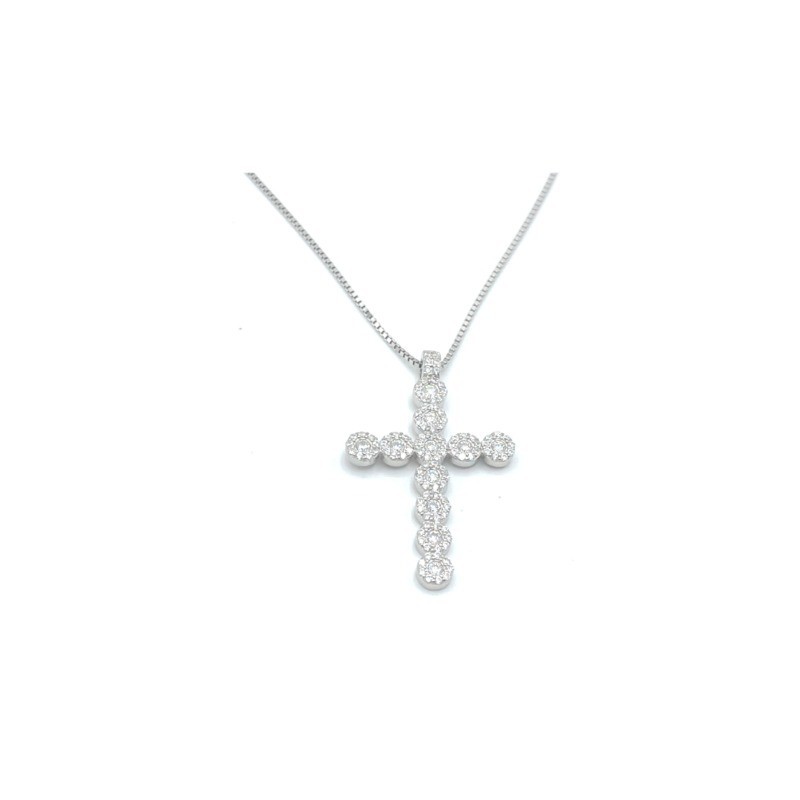 Pendente con croce in Argento 925/°°° e Zirconi - Veneziana 45 cm - Questo articolo verrà spedito con il suo particolare astuccio.