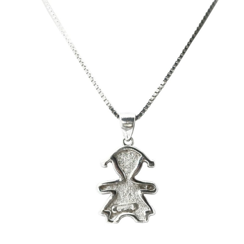 pendente donna in argento 925% possibilità di sceltra tra: bimba con zirconi naturali, o bimba liscia. lunghezza veneziana: 45 cmnichel free