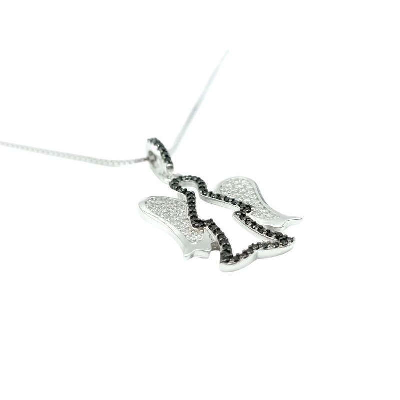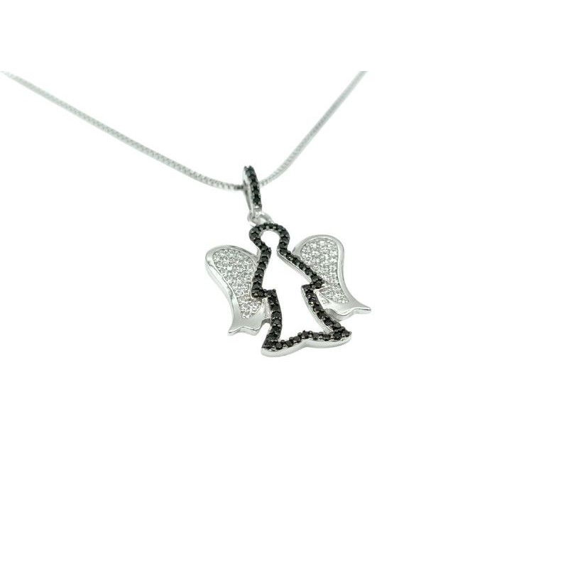 pendente angelo in argento 925% e zirconi naturali . lunghezza veneziana 45cm.
