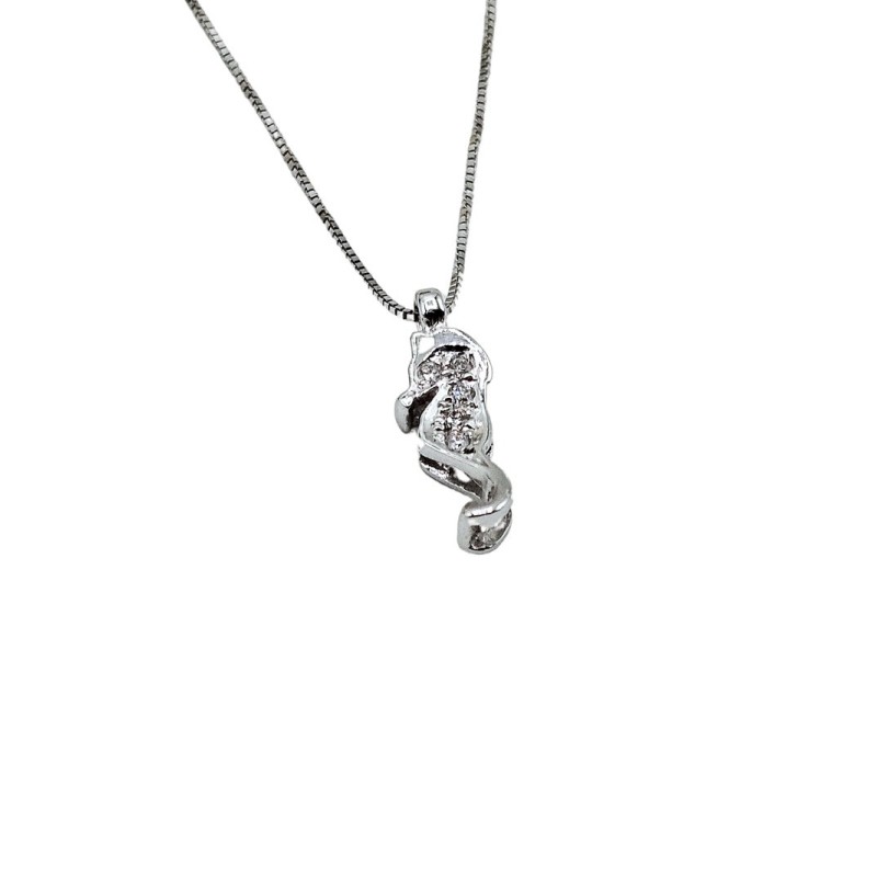 Collana cavalluccio marino in oro 18kt con diamanti taglio brillante G VS 0,03 ct. L'articolo verrà spedito in confezione originale.