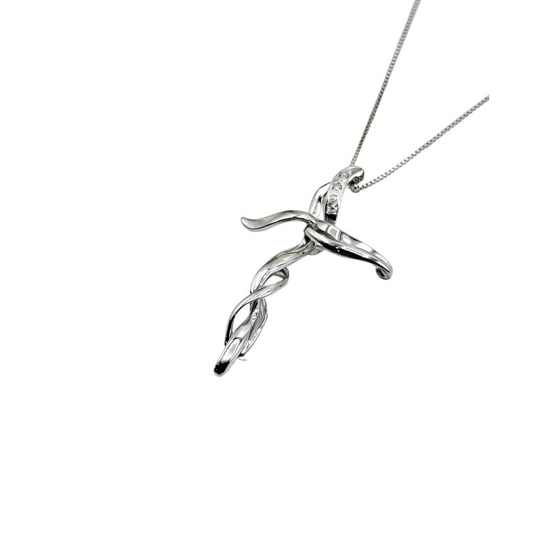 Collana veneziana con pendente croce in oro 18kt con diamanti taglio brillante G VS 0,02 ct. L'articolo verrà spedito in confezione originale.