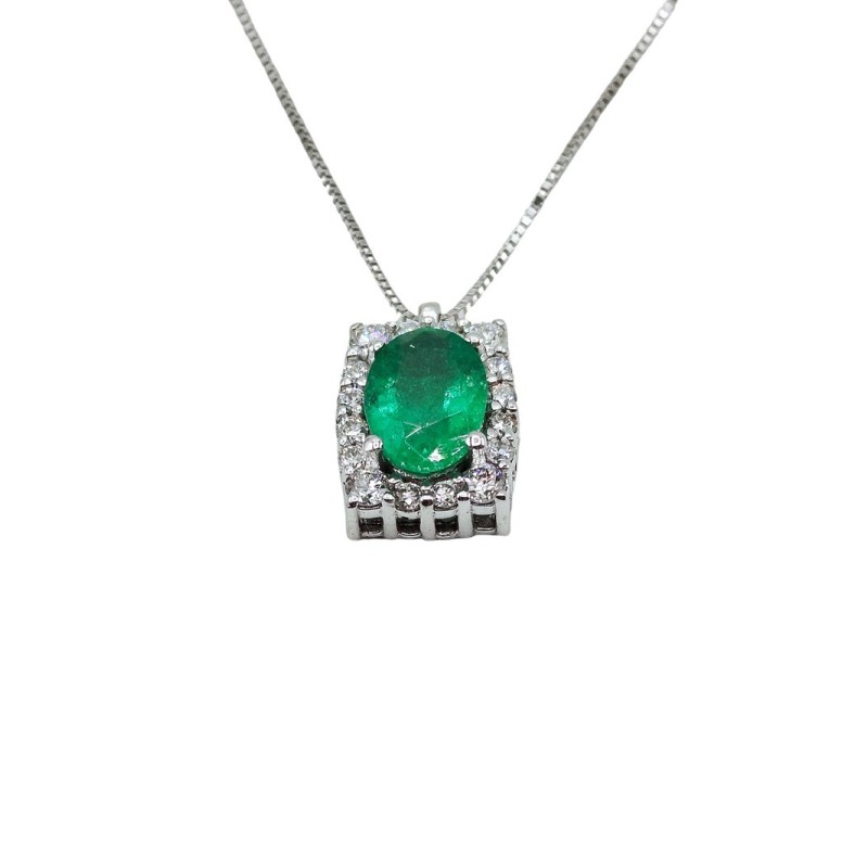 Collana in oro 18kt con smeraldo naturale taglio ovale 0,50 ct. e diamanti taglio brillante G VS 0,11 ct. Aggiungi un tocco di brillantezza al tuo look con un gioiello sempre attuale. L'articolo verrà spedito in confezione originale.