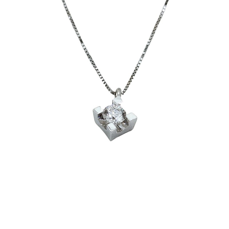 Collana punto luce in oro 18 kt con diamante taglio brillante G VS 0,19 ct. L'articolo verrà spedito in confezione originale.