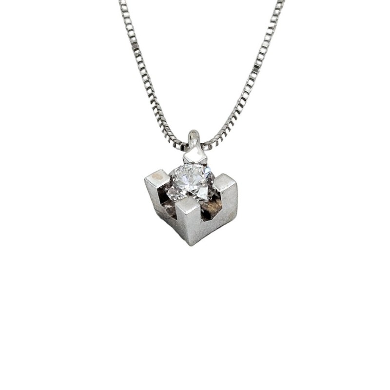 Collana punto luce in oro 18kt e diamante taglio brillante G VS 0,11 ct. L'articolo verrà spedito in confezione originale.