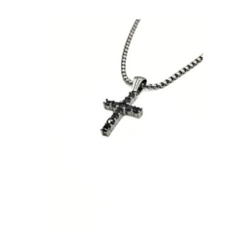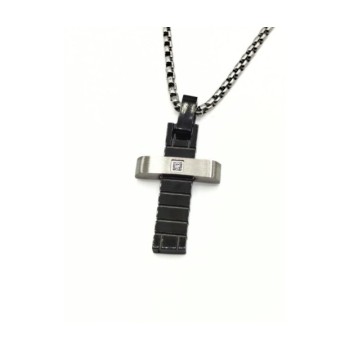 Pendente croce in Acciaio 316l con zirconi neri e catenina forzatina da 50 cm. Collezione DETTAGLI X LUI. L'articolo verrà spedito in confezione originale IL GIOIELLO DI PANI.