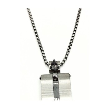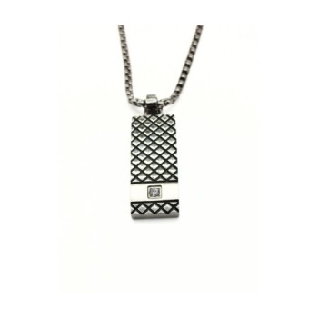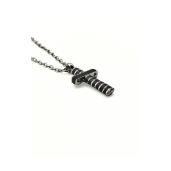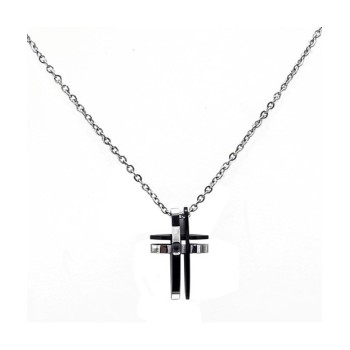 Collana con pendente croce in acciaio 316 l e zircone nero centrale. Linea DETTAGLI X LUI. L'articolo verrà spedito in confezione originale IL GIOIELLO DI PANI.