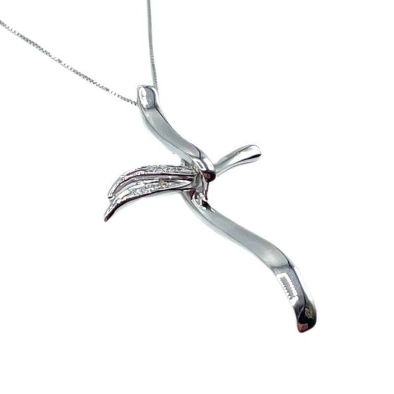 Croce con veneziana. Oro 18kt. Brillante 0,03 ct. colore F purezza VVS1.Questo articolo verrà spedito con la sua particolare scatola, perfetta per un idea regalo o per conservare il gioiello quando non indossato.