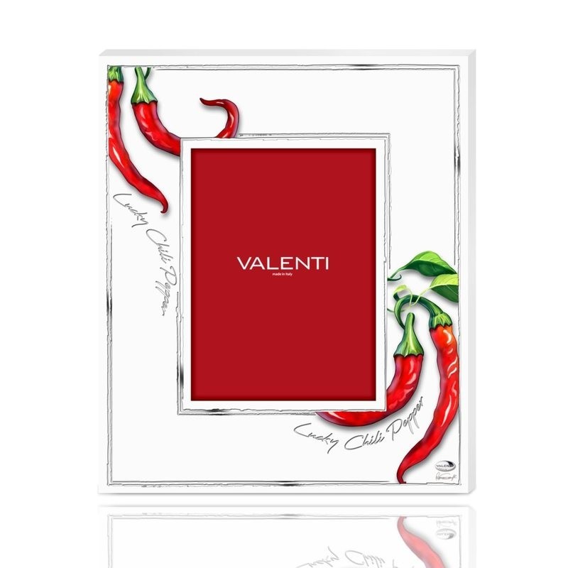 Cornice 15X20 in legno bianco con disegno di peperoncini e dettagli in foglia d'argento Valenti ls100 4x. Questo articolo verrà spedito con Scatola Originale Valenti Argenti.