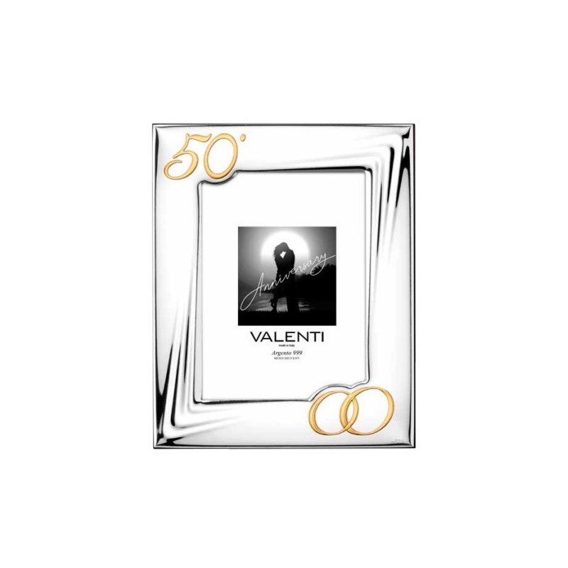 Cornice Valenti in argento 925/°° a tema 50° Anniversario - Dimensione 13x18 cm.Questo articolo verrà spedito con Scatola Originale Valenti Argenti.