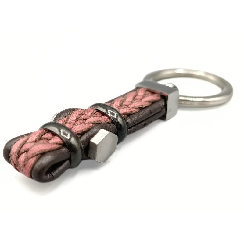 Portachiavi uomo in cuoio intrecciato e acciaio 316l . L'articolo verrà spedito in confezione originale IL GIOIELLO DI PANI.