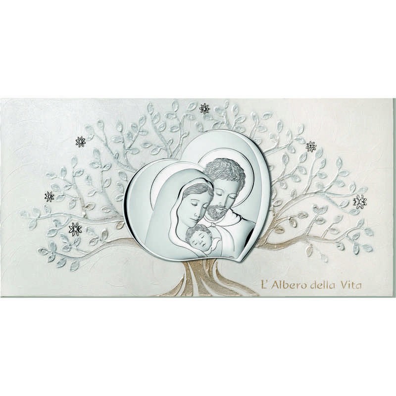Quadro rettangolare con albero della vita e sacra famiglia di Valenti - Dimensioni 60x45 cm.Questo articolo verrà spedito con scatola originale Valenti argenti.