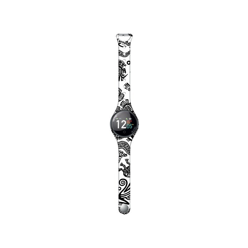 L'orologio Smartwatch da donna di Techmade della collezione freetime con fantasia azteca è perfetto da indossare nel quotidiano. La cassa è di forma rotonda e di colore nero. Il cinturino è decorato con una fantasia: azteca. La chiusura è ad incastro. Compatibilità smartphone ios 11. 0 e Android 6. 0. Offre altre funzioni come, wrist sense, orologio, pedometro, calorie, distanza, sleep monitor (controllo della qualità del sonno), avviso di chiamata e sms, sveglia, notifiche, waterproof, frequenza cardiaca. Questo Smartwatch verrà spedito con scatola originale Techmade.