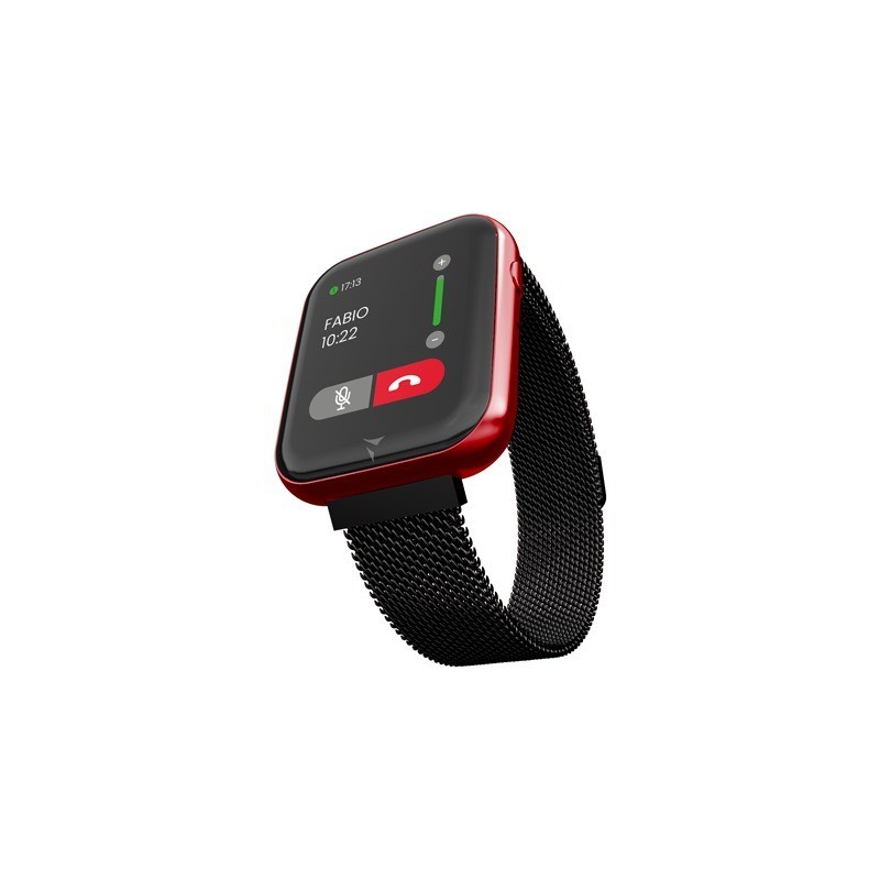 Orologio smartwatch unisex Techmade della collezione Talk. La cassa dello smartwatch è realizzata in alluminio rosso e il cinturino in acciaio nero. La resistenza all'acqua è IP68 (3 ATM). Le funzioni sono, le chiamate, notifiche ed sms, contapassi , test cardio, calorie. Scattati un selfie , grazie a questa opzione potrai personalizzare il tuo Smartwatch con una watchface esclusiva. Scatta un selfie e impostalo come immagine di sfondo per un effetto davvero unico!Ed altre funzioni come: sveglia, distanza, monitor del sonno (controllo della qualità del sonno), promemoria sedentario, sensore del polso. Smartwatch compatibile con qualsiasi smartphone Android e iPhone, app dedicata da scaricare sul tuo cellulare.L 'articolo verrà spedito con astuccio originale Techmade.
