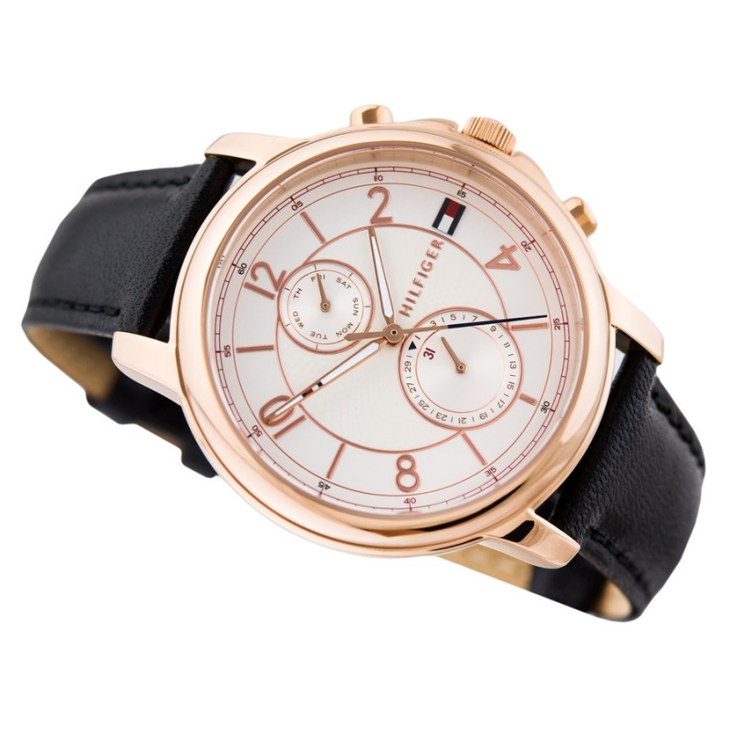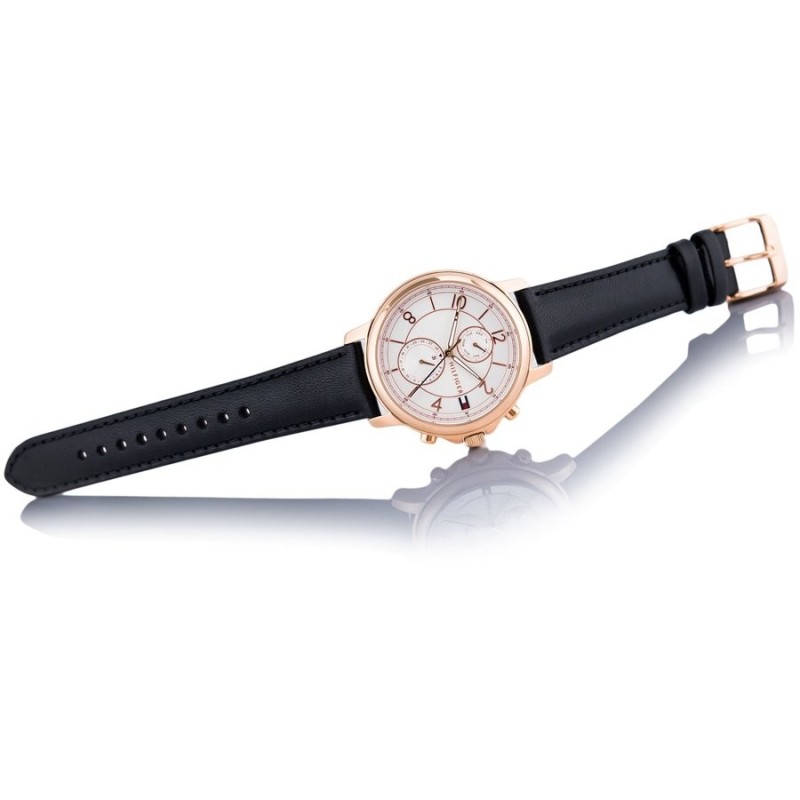 orologio tommy hilfiger mod.1781817. cinturino di pelle nero. lunghezza 172 mm, larghezza 16 mm. cassa in acciaio inox rosa dorato. diametro della cassa: 35 mm. altezza: 9 mmfunzioni: ora, minuti, secondo, data, giorno della settimana.impermeabilità : 3 bar. ciò corrisponde a circa 30 metri. movimento: quarzoquadrante bianco con numeri arabi rosa dorato. fibbia ad ardiglionevetro d'orologio: vetro minerale. analogico. garanzia 2 anni. confezione: originale tommy hilfiger.