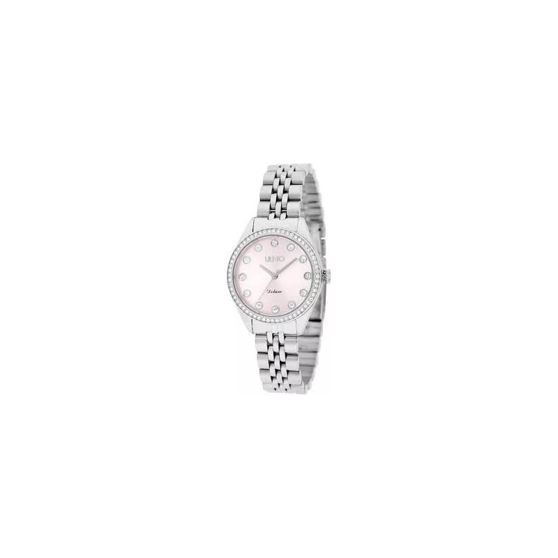 Orologio da donna di Liujo della collezione Deluxe. Orologio con movimento miyota, 3 lancette e resistenza all'acqua di 5 atm. La cassa è realizzata in acciaio inossidabile ed è di colore argento. Misura cassa: 30 mm. Il quadrante è di colore rosa. L'orologio è caratterizzato dalla presenza di zirconi decorativi. Il cinturino è realizzato in acciaio inossidabile ed è di colore argento. La referenza è: TLJ2254.Questo articolo verrà spedito con Scatola Originale Liujo se prevista dal brand.