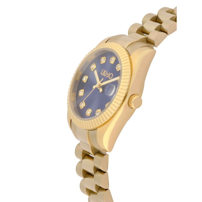Orologio donna Liu Jo della collezione Casual Timeless realizzato con cassa in acciaio color oro giallo con un diametro di 31 mm. Il quadrante è color blu impreziosito da cristalli bianchi, indici color oro giallo e datario. Ha un vetro minerale e la resistenza all'acqua è di 5 ATM. Il cinturino è realizzato in acciaio color oro giallo. L'articolo verrà spedito in confezione originale LIU JO.